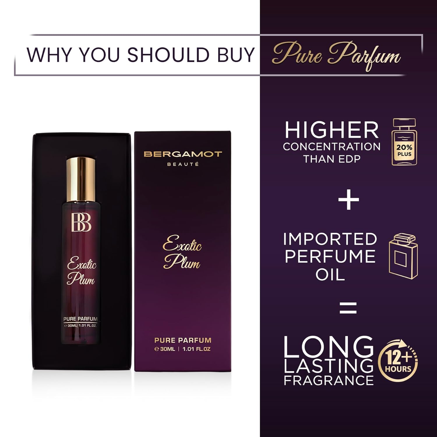 Bergamot Beaute EXOTIC PLUM Pure Parfum| Plum, Honey & Vanilla | 12+ Hrs Long Lasting Perfume for Women | Higher Concentration than EDP 30ML