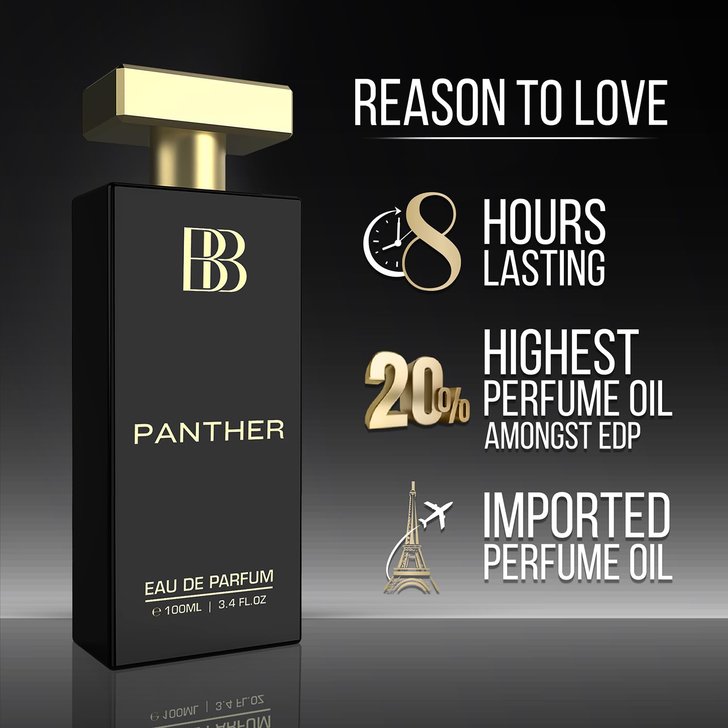 Bergamot Beaute Panther Eau De Parfum Men | Perfume For Men 100ml | Premium Long-Lasting Fragrance | Best Perfume for Men with Patchouli and Musky