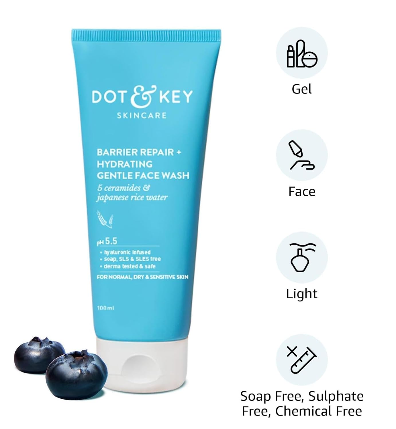 DOT & KEY Barrier Repair + Hydrating Gentle Face Wash With Probiotic | Ceremide Face Wash | For Dry Skin,Normal Skin & Sensitive Skin