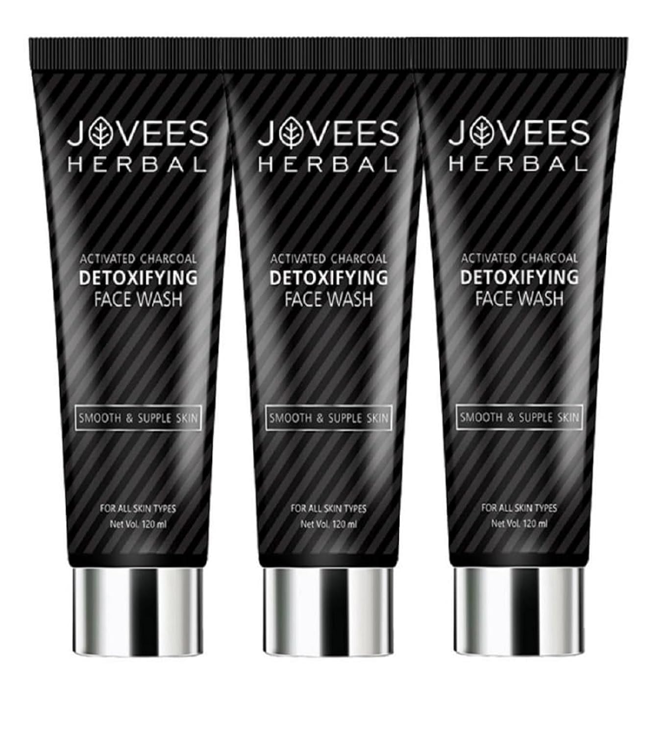 Jovees Herbal Activated Charcoal Detoxifying Face Wash For Deep Pore Cleansing, Oil Control, Removes Dirt & Impurities For All Skin Types 120ml (Pack Of 3)