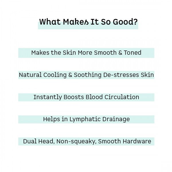 STIMULATES LYMPHATIC DRAINAGE, BOOSTS BLOOD CIRCULATION: Self-massage with the Jade Roller instantly boosts blood circulation leaving an irresistible rosy flush. It also helps in lymphatic drainage of the face which again, de-puffs the face and purifies the skin from within. It also makes the skin supple and firm and improves skin elasticity. It's the perfect way to wake your skin up in the morning, relax your skin at night.