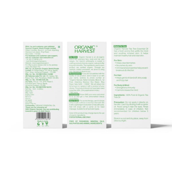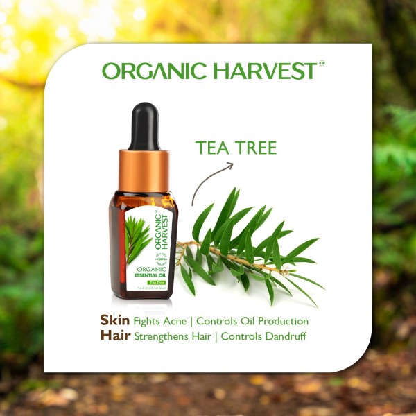 Organic Harvest Tea Tree Essential Oil, Pure & Undiluted Therapeutic Grade Oil, Excellent for Aromatherapy, 100% American Certified Organic, Paraben & Sulphate Free - 10ml