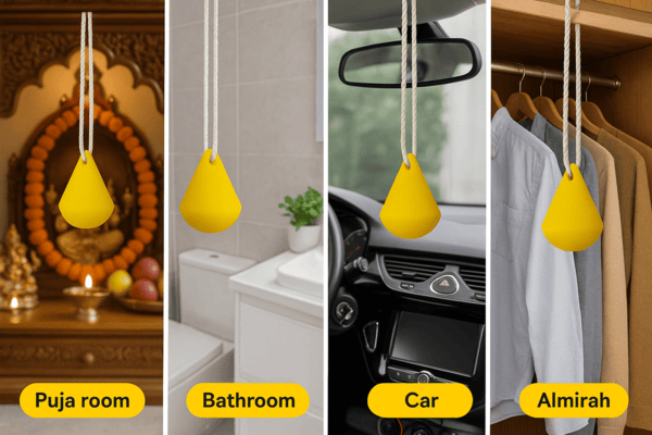 Easy to Use: Simply hang the cone in your car, home, office, Puja room, or bathroom for an instant and hassle-free refresh of any space.