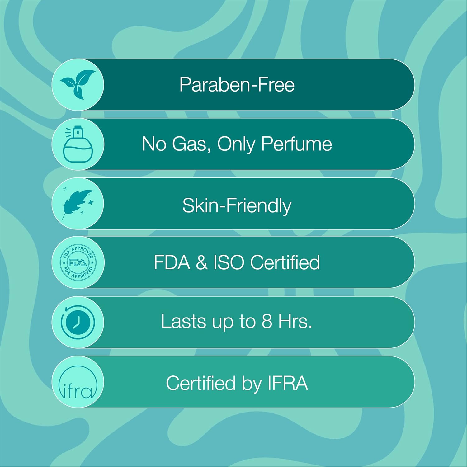 MEMORABLE BLEND: Indulge your senses in the memorable blend of floral notes and compounded marine undertones of this body perfume for women. The unique combination of no-gas deodorant for women creates a captivating fragrance that lingers throughout the day and leaves a lasting impression.
