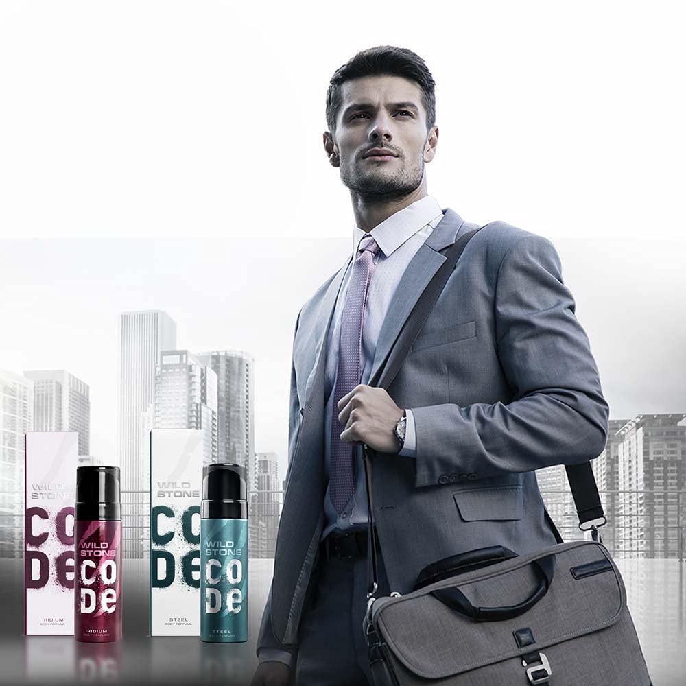 Wild Stone Code Steel & Iridium No Gas Body Perfume Combo for Men,Pack of 2 (120 ml each)