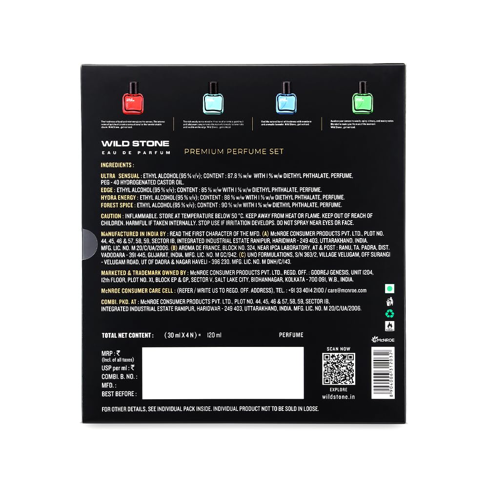 Wild Stone EAU DE Parfum Gift Set for Men, Pack of 4 (4x30ml) | Premium Fragrance Gift Set | Edge,Ultra Sensual, Hydra Energy & Forest Spice Luxury Perfume Gift Set