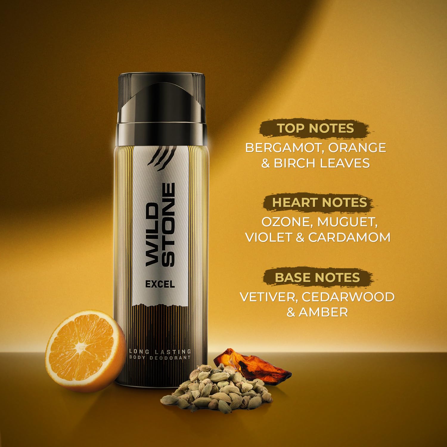 Wild Stone Excel Deodorant for Men, Pack Of 2 (150ml Each) | Best Deo for Office | A Long-Lasting Body Spray for Men | Excel Body Spray with Woody Fragrance